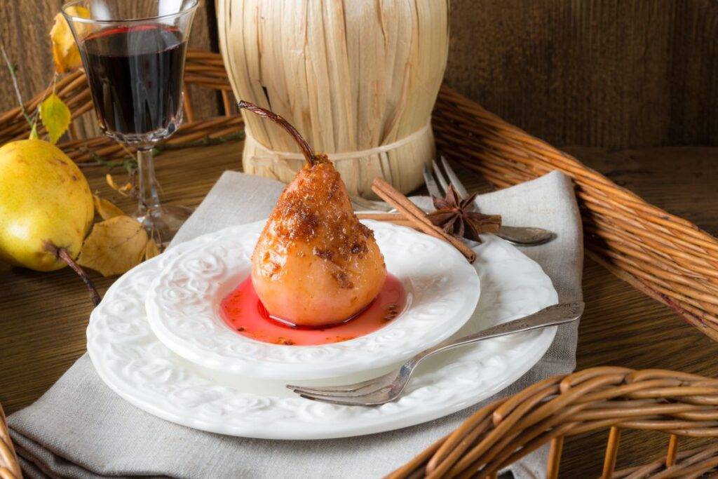 - Gruszki w czerwonym winie to elegancki, prosty deser, w którym owoce gotuje się w mieszance czerwonego wina, cukru i przypraw (np. cynamonu i goździków). Efekt? Piękny, głęboki kolor i niezwykły aromat. Tak przygotowane gruszki świetnie sprawdzą się solo, z gałką lodów waniliowych lub jako dodatek do eleganckich ciast.