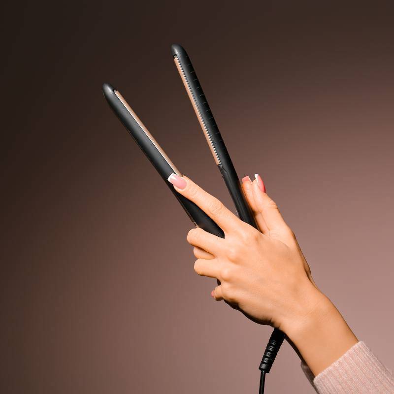 - Podłącz prostownicę do prądu i poczekaj, aż oba jej panele nagrzeją się do odpowiedniej temperatury.